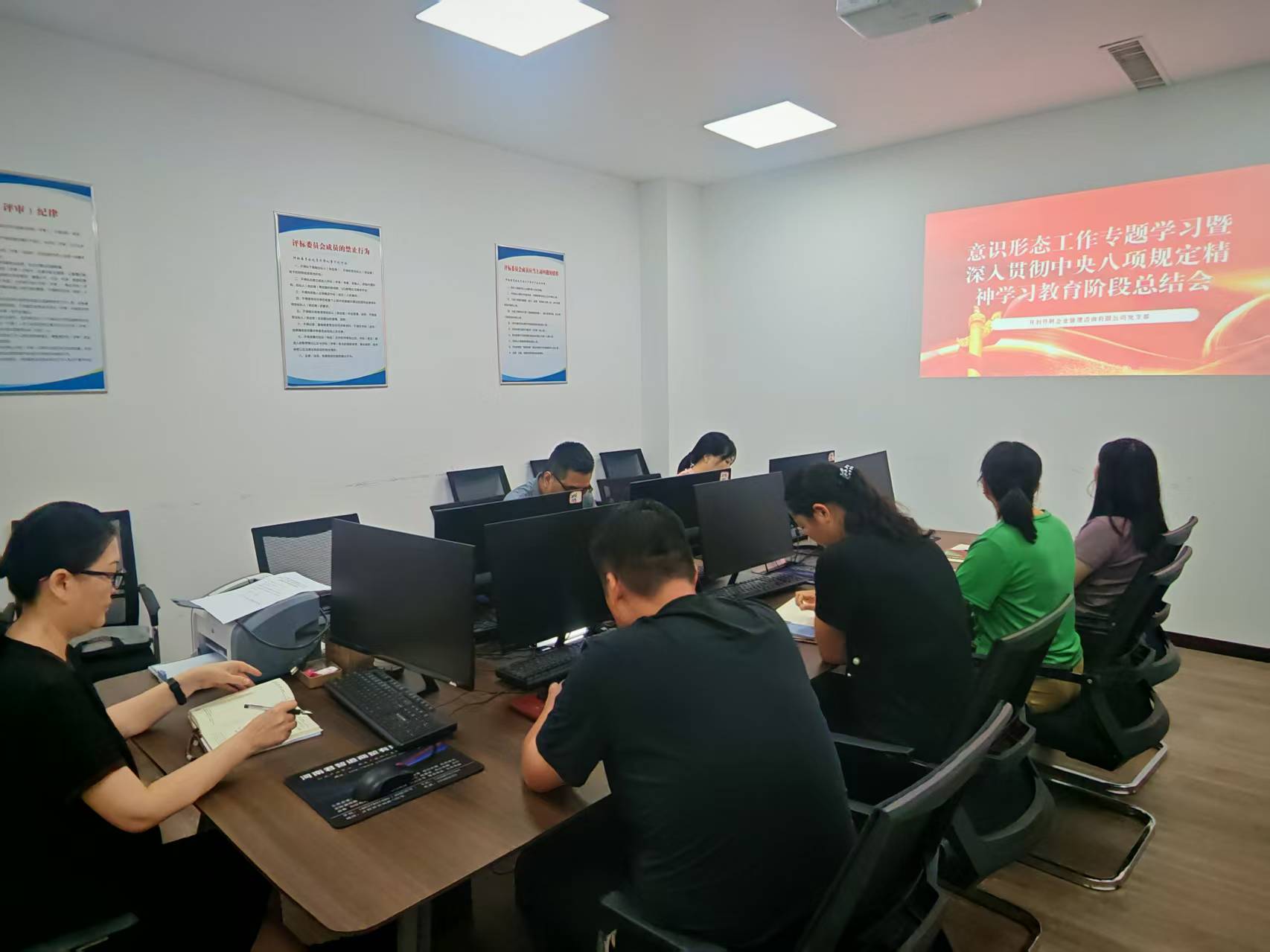 8月14日下午,开财咨询党支部在会议室召开意识形态工作专题学习暨深入贯彻中央八项规定精神学习教育阶段总结会。